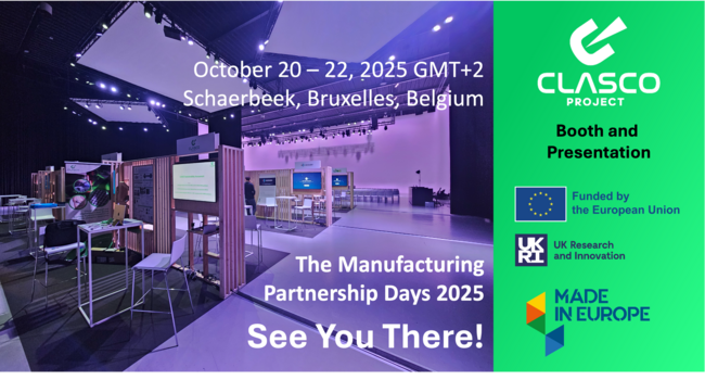 In addition to the presentation, CLASCO will be present with an exhibition booth, providing an opportunity for participants to discuss technical developments, potential collaborations, and the project’s contribution to the Made in Europe partnership.