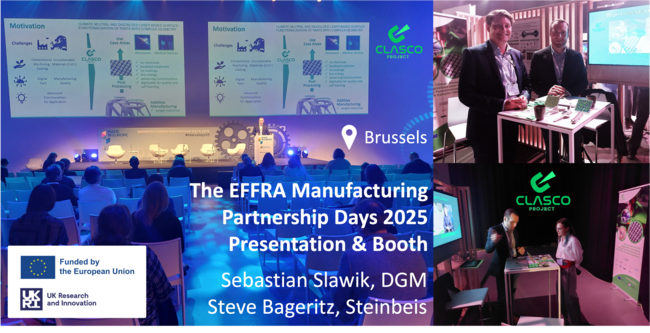 The CLASCO project played a significant role in the event. Sebastian Slawik from the German Society for Materials Science and Steve Bageritz from Steinbeis Europa-Zentrum were present, with Sebastian giving an overview of CLASCO’s latest results, highlighting the project’s advancements in laser technology and surface engineering. Additionally, the project’s booth gave attendees the opportunity to engage in detailed discussions on technology innovations, potential collaborations, and business prospects.