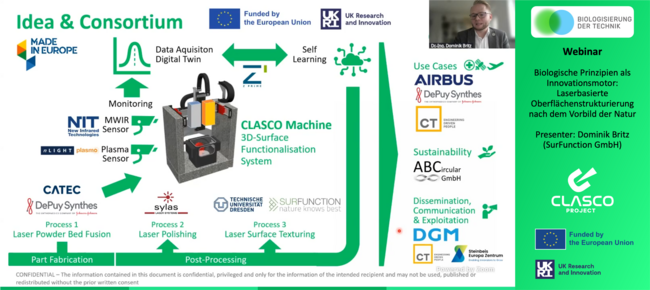 A key focus of the talk was the contribution of DLIP technology to circular economy strategies. By functionalizing surfaces directly, coatings and chemical additives can be reduced, material consumption minimized, and product lifetimes extended. The webinar also illustrated how DLIP can be combined with complementary methods to develop customized solutions for industrial and societal needs.