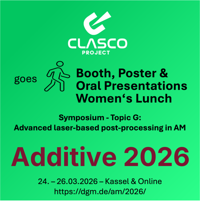 The symposium G01: Advanced laser-based post-processing in AM is held in collaboration with the CLASCO project and addresses a central challenge in metal additive manufacturing: how to transform as-built parts with complex geometries into application-ready components with improved surface quality and added functionality. CLASCO’s specific contribution lies in the combination of laser polishing, surface texturing, in-situ monitoring, and adaptive process development. These approaches are particularly relevant for industrial fields with demanding requirements, including aerospace, medical technology, and energy.