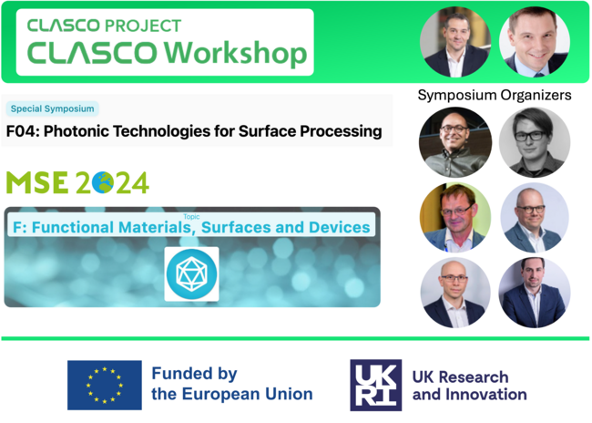 The workshop and symposium are co-organized by Prof. Andrés Lasagni and Dr. Bogdan Voisiat, both members of the CLASCO consortium, from TU Dresden. The event will provide an excellent platform for researchers, engineers and industry professionals to exchange ideas, explore collaborations and learn about the latest trends in laser technology.